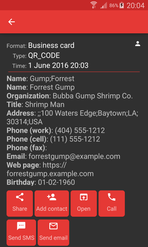 در حال حاضر این برنامه برای خواندن فرمت های زیر طراحی شده است: • اطلاعات تماس (meCard، vCard) • رویداد تقویم (iCalendar) • شبکه Wi-Fi • محل جغرافیایی • مبلغ پرداختی • SPD (توصیفگر پرداخت کوتاه) • بیت کوین (BIP 0021) • شماره تلفن • پست الکترونیکی (استاندارد W3C، NTT DoCoMo – MATMSG، OMI @) • URL وب لینک فروشگاه Google Play • پیامک • کتاب ها • محصولات • متن ساده