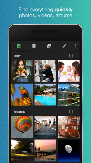 Quick Gallery PREMIUM نرم افزاری قدرتمند برای افرادی می باشد که تصاویر و ویدئوهای زیادی در تلفن همراه خود دارند.به وسیله این برنامه میتوانید یک گالری سریع برای نمایش تصاویر و ویدئوها در اسمارت فون خود داشته باشید.همچنین با ویرایشگر حرفه ای این برنامه میتوانید با فیلترها و افکت های خارق العاده تصویر خود را به صورت حرفه ای ویرایش و با دوستان خود به اشتراک بگذارید.